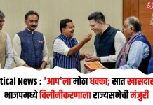 Political News : ‘आप’ला मोठा धक्का; सात खासदारांच्या भाजपमध्ये विलीनीकरणाला राज्यसभेची मंजुरी