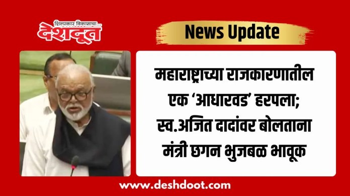 आपल्या कामात ते अतिशय तत्पर असायचे. विरोधकांचे देखील कामे ते प्राधान्याने करत होते. हे अजितदादा आपल्यात नाही अद्याप यावर विश्वासच बसत नाही. दादांचा वावर आजही आपल्यात आहे असेच नेहमी वाटते. त्यांच्या जाण्याने आज महाराष्ट्राच्या राजकारणातील एक ‘आधारवड’ आज उन्मळून पडला असून कधीही न भरून निघणारी पोकळी निर्माण झाली असल्याच्या शोकभावना मंत्री छगन भुजबळ यांनी यावेळी व्यक्त केल्या.