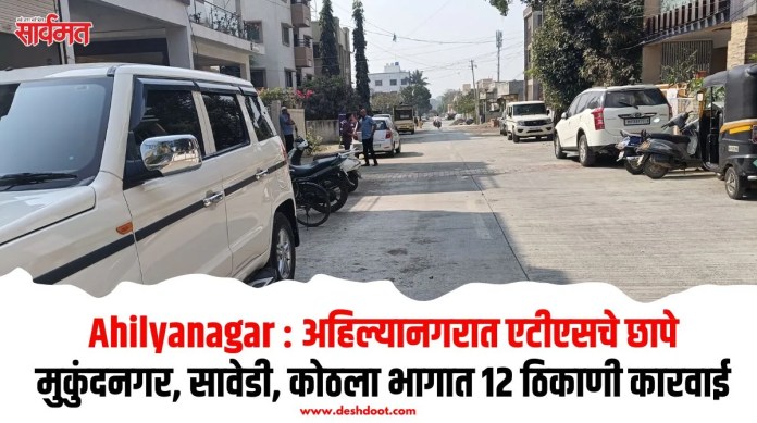 शहरातील मुकुंदनगर, सावेडी उपनगरातील तपोवन रस्ता परिसर व कोठला भागात रविवारी (15 फेब्रुवारी) पहाटेपासून महाराष्ट्र दहशतवादविरोधी पथकाने (एटीएस) गुप्त छापेमारी मोहीम राबवून 12 घरांची झडती घेतली. सुमारे 100 ते 125 अधिकारी-कर्मचार्यांच्या पथकाने एकाच वेळी विविध ठिकाणी कारवाई करत लॅपटॉप, मोबाईलमधील डिजिटल डेटा, संशयास्पद पुस्तके व कागदपत्रे ताब्यात घेतल्याची माहिती सूत्रांनी दिली.