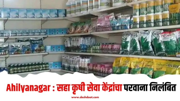 निविष्ठा विक्रीमध्ये अनियमितता आणि लिकिंग होत असल्याच्या तक्रारीवरून कृषी विभागाच्या भरारी पथकाने छापा टाकून केलेल्या कारवाईत जिल्ह्यातील सहा कृषी सेवा केंद्रांचा परवाना निलंबित करण्यात आला आहे. त्यात कोपरगाव तालुक्यातील तीन तर अकोले, श्रीगोंदा, शेवगाव तालुक्यातील प्रत्येकी एक केंद्राचा समावेश आहे.