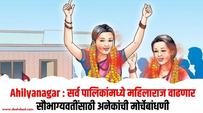 आगामी निवडणुकीच्या दृष्टीने रणधुमाळी सुरू झाली असून श्रीरामपूर, राहुरी, देवळाली, राहाता, कोपरगाव, संगमनेर, शिर्डी, श्रीगोंदा, शेवगाव, पाथर्डी व जामखेड नगरपालिका आणि नेवासा नगरपंचायतच्या प्रभाग निहाय आरक्षण काल बुधवार 8 ऑक्टोबर रोजी जाहीर करण्यात आले. यामध्ये प्रभागातील 50 टक्के जागा महिलांना राखीव ठेवण्यात आल्याने अनेक इच्छुकांचा भ्रमनिरास झाला आहे. काहींनी आपल्या सौभाग्यवतीसाठी मोर्चेबांधणी सुरू केली आहे. यंदा प्रथमच सर्व नगरपरिषदांमध्ये निम्म्या महिला सदस्य दिसणार आहेत.