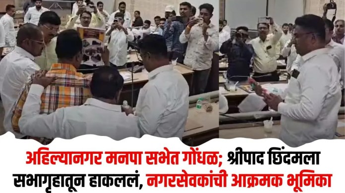 अहिल्यानगर महानगरपालिकेची अर्थसंकल्पीय सभा शुक्रवारी अभूतपूर्व गोंधळ आणि वादाने गाजली. छत्रपती शिवाजी महाराज यांच्याबद्दल आक्षेपार्ह वक्तव्य केल्यामुळे वादाच्या भोवऱ्यात सापडलेले नगरसेवक श्रीपाद छिंदम यांनी सभागृहात बोलण्याचा प्रयत्न करताच, इतर नगरसेवकांनी त्यांना कडाडून विरोध केला. या गदारोळामुळे सभागृहातील वातावरण कमालीचे तापले होते, ज्याची परिणती अखेर छिंदम यांना सभागृहाबाहेर काढण्यात झाली.
