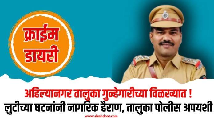 गावागावात चोर्या, महामार्गावर दरोडे, नागरिकांना शस्त्राच्या धाकाने लुटणे यामुळे अहिल्यानगर तालुका गुन्हेगारीच्या गर्तेत अडकला आहे. मात्र हे सर्व होत असताना तालुका पोलीस ठाणे फक्त ‘दाखवायची कारवाई’ करण्यात रमले आहे. नागरिकांच्या सुरक्षिततेचा प्रश्न गंभीर होत असताना पोलिसांचा कारभार बेफिकीर, तर वरिष्ठांचा आंधळा पाठिंबा नागरिकांच्या रोषाला आमंत्रण देतो आहे. तालुका पोलिसांची वास्तविक कामगिरी शून्य, तरीही वरिष्ठ अधिकार्यांकडून त्यांचे कौतुक होत आहे. नागरिक मात्र दररोज भीतीत जगत आहेत. रस्त्यावर पडले की लुटले जाणार, घर सोडले की फोडले जाणार – अशी परिस्थिती निर्माण झाली आहे.