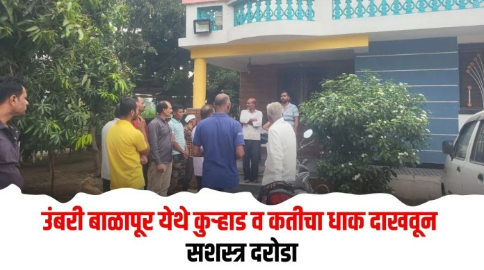रात्री दीड वाजेच्या सुमारास ही टोळी प्रवरा कालव्यालगत असलेल्या चांगदेव उंबरकर यांच्या घरी पोहोचली. घराचा मागील दरवाजा तोडून आत प्रवेश केलेल्या ३ ते ४ दरोडेखोरांनी तब्बल उंबरकर कुटुंबांच्या म्हणण्यानुसार १० ते १२ तोळे सोने आणि २८ ते ३० हजारांची रोकड चोरट्यांनी पळवली. यावेळी घरातील तरुण जागे झाले असता, दरोडेखोरांनी त्यांच्या गळ्याला कुऱ्हाड आणि कती लावून जीवे मारण्याची धमकी दिली. यावेळी घरातील वृध्द महिलेच्या कानातील दागिने ओरबाडल्याने त्यांचे कान फाटले आहेत. तर, प्रतिक उंबरकर या तरुणाने प्रतिकार करण्याचा प्रयत्न केला असता त्यांच्यावर दगडफेक करून चोरटे सामान घेऊन पसार झाले. यावेळी ७ ते ८ चोरटे असल्याचा अंदाज नागरीकांनी व्यक्त केला आहे.