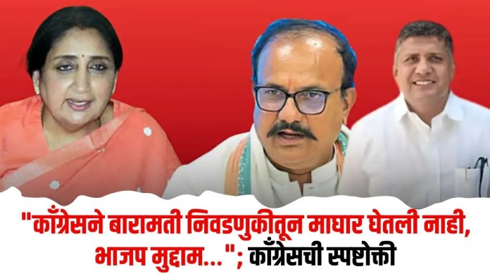 बारामती विधानसभा पोटनिवडणुकीच्या रणधुमाळीत राजकीय वातावरण चांगलेच तापले असून, उमेदवारी अर्ज मागे घेण्याबाबत सुरू असलेल्या चर्चेवर काँग्रेसने आपली भूमिका स्पष्ट केली आहे. भारतीय जनता पक्षाच्या कोणत्याही नेत्याने उमेदवारी अर्ज मागे घेण्या संदर्भात काँग्रेस पक्षाशी अद्याप कोणताही संपर्क साधलेला नाही. या संदर्भात प्रसारमाध्यमांमध्ये आणि राजकीय वर्तुळात पसरवल्या जाणाऱ्या बातम्या पूर्णपणे खोट्या, दिशाभूल करणाऱ्या आणि निराधार आहेत, असे स्पष्टीकरण काँग्रेसचे प्रदेशाध्यक्ष हर्षवर्धन सपकाळ यांनी दिले आहे.