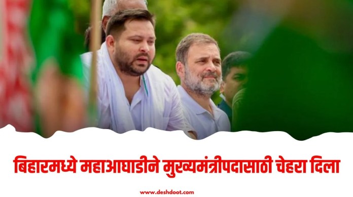 संपूर्ण देशाचं लक्ष लागून राहिलेल्या बिहार विधानसभा निवडणुकीमध्ये (Bihar Assembly Elections) महागठबंधनने म्हणजेच महाआघाडीने एकमताने मुख्यमंत्रीपदाचा चेहरा कोण असेल याची घोषणा राजस्थानचे माजी मुख्यमंत्री अशोक गेहलोत (Former Rajasthan CM Ashok Gehlot) यांनी पाटण्यामध्ये आयोजित पत्रकार परिषदेमध्ये केली आहे. बिहार निवडणुकीच्या पहिल्या टप्प्यापूर्वी जागावाटपावरून सुरू असलेल्या मतभेदांमध्ये, महागठबंधनने (Mahagathabandhan) आज संयुक्त पत्रकार परिषद घेतली. महागठबंधनने तेजस्वी यादव (Tejashwi Yadav) यांना मुख्यमंत्रीपदाचे उमेदवार म्हणून घोषित केले आहे. काँग्रेसचे ज्येष्ठ नेते अशोक गेहलोत यांनी महागठबंधन जिंकल्यास तेजस्वी यादव आणि मुकेश साहनी (Mukesh Sahni) यांना अनुक्रमे मुख्यमंत्रीपदाचे आणि उपमुख्यमंत्रीपदाचे चेहरे म्हणून घोषित केले आहे.