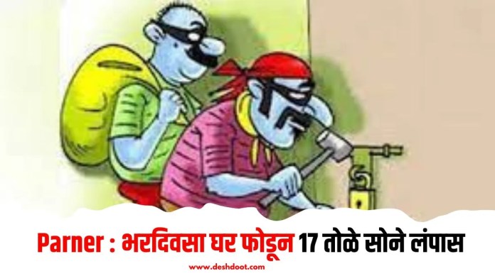 ही संधी साधून चोरट्यांनी घराचे व तिजोरीचे कुलूप तोडून सोन्याचे दागिने चोरून नेले. त्यात 6 तोळ्याचे सोन्याचे गंठण (तीन लाख रुपये), चार तोळ्याचा राणीहार (2 लाख), 2 तोळ्याचे ब्रेसलेट (1 लाख), अडीच तोळ्याचे कानातले बेलचे (दीड लाख), दीड तोळ्याच्या अंगठ्या (75 हजार), कानातील 3 जोड (50 हजार), असे एकूण 8 लाख 75 हजार रुपयांचे एकूण 17 तोळे सोने चोरांनी लंपास केले.