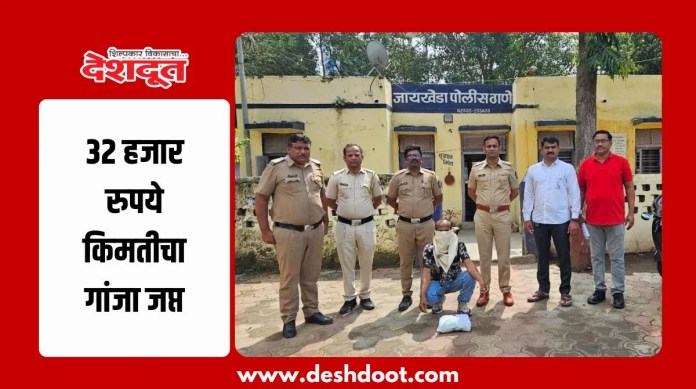 जायखेडा पोलिसांनी नामपूर येथे केलेल्या धडक कारवाईत ३२ हजार रुपये किमतीचा गांजा जप्त केला. या प्रकरणी एकास अटक करीत गुन्हा दाखल करण्यात आला आहे.