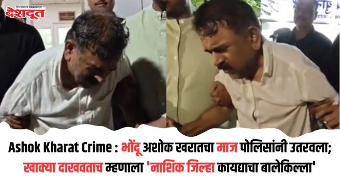 दरम्यान, अशोक खरात ज्यावेळी युनिट एकच्या कार्यालयातून (Unit One) बाहेर आला त्यावेळी लंगडत आणि कण्हत चालत होता. तसेच त्याला पाय उचलणेही जड झाले होते. तो कसाबसा पोलिसांसोबत गाडीत जाऊन बसला. यावेळी त्याने स्वत:ची मान शेजारच्या पोलीस कर्मचार्याच्या अंगावर टाकली होती. महापालिका निवडणुकीच्या आधी नाशिक शहरात गुन्हेगारी वाढली होती. त्यामुळे ही गुन्हेगारी मोडीत काढण्यासाठी ‘नाशिक जिल्हा, कायद्याचा बालेकिल्ला’ ही मोहीम सुरू करत पोलिसी खाक्या दाखविल्या. यात आरपीआय आठवले गटाचा जिल्हाप्रमुख प्रकाश लोंढेसह त्याची टोळी, ठाकरेंच्या शिवसेनेतून भाजपमध्ये दाखल झालेले मामा राजवाडे, अजय बागुल यांच्या सोबत शहरातील अनेक नामांकित गुन्हेगारांचा कायद्याचा बालेकिल्ला केला होता. त्यानंतर आता अशोक खरातच बालेकिल्ला केल्याने नागरिकांनी समाधान व्यक्त केले आहे.