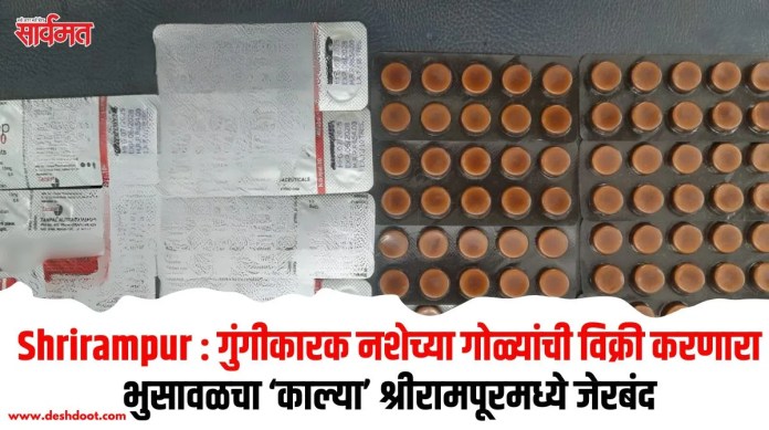 श्रीरामपुरात गुंगीकारक नशेच्या गोळ्यांची विक्री करण्यासाठी आलेल्या एका 30 वर्षीय तरुणाला शहर पोलिसांनी अटक करून मुद्देमाल जप्त केला आहे. काल्या उर्फ तस्लीम सलीम शेख (रा.नाहटा कॉलेजजवळ, इंदिरानगर, भुसावळ), असे अटक केलेल्या आरोपीचे नाव असून त्याच्याकडून 24 हजार रुपयांचा मुद्देमाल जप्त केला. त्यात नायट्राझेपम या गुंगीकारक गोळ्यांच्या 19 पाकिटांसह 23 हजार रुपये रोख रक्कम समाविष्ट आहे. ही कारवाई शुक्रवार दि.17 ऑक्टोबर रोजी सायंकाळी 6.50 वाजेच्या दरम्यान गुप्त माहितीच्या आधारे करण्यात आली.