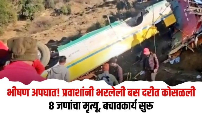 हिमाचल प्रदेशातील सिरमौर जिल्ह्यामध्ये शुक्रवारी दुपारी एक काळजाचा थरकाप उडवणारी घटना घडली आहे. हरिपुरधार येथे एक खासगी बस नियंत्रणाबाहेर जाऊन थेट खोल दरीत कोसळली. या भीषण अपघातात आठ प्रवाशांचा जागीच मृत्यू झाला असून अनेक जण गंभीर जखमी झाले आहेत. बसमध्ये क्षमतेपेक्षा जास्त प्रवासी असल्याची प्राथमिक माहिती समोर येत आहे.