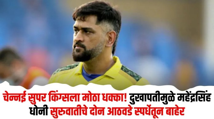 इंडियन प्रीमियर लीग (IPL) २०२६ चा थरार सुरू होण्यापूर्वीच पाच वेळच्या चॅम्पियन चेन्नई सुपर किंग्सच्या (CSK) गोटातून एक अत्यंत धक्कादायक बातमी समोर आली आहे. चेन्नईचा आधारस्तंभ आणि कोट्यवधी चाहत्यांचे दैवत असलेला माजी कर्णधार महेंद्रसिंह धोनी दुखापतीमुळे स्पर्धेच्या पहिल्या दोन आठवड्यांना मुकणार आहे. फ्रँचायझीने शनिवारी अधिकृत निवेदनातून या वृत्ताला दुजोरा दिला असून, या बातमीने सीएसकेच्या समर्थकांमध्ये चिंतेचे वातावरण पसरले आहे.