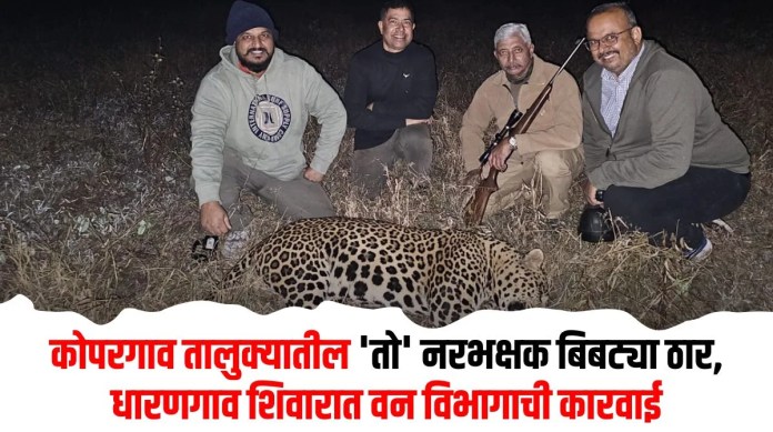 नरभक्षक बिबट्याला ठार मारण्याची अधिकृत परवानगी मिळाल्यानंतर वनविभागाने धारणगाव शिवारात मोठी कारवाई केली. सलग पाच दिवस अथक परिश्रम घेतल्यानंतर, काल रात्री (तारीख) धारणगाव शिवारात या बिबट्याला अखेर ठार मारण्यात यश आले. डॉक्टर राजीव शिंदे, प्रशांत शहाणे, योगश शहाणे, राजन जगताप, आणि आरएफओ रोडे या टीमने मिळून बिबट्याला शूट करण्यात महत्त्वपूर्ण भूमिका बजावली. सहा दिवसांच्या मोठ्या प्रयत्नांनंतर, दोन निरपराध लोकांचा जीव घेणाऱ्या या नरभक्षक बिबट्याची दहशत अखेर संपुष्टात आली.