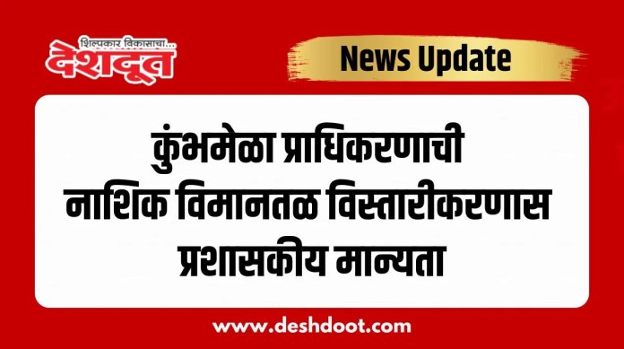 आगामी सिंहस्थ कुंभमेळ्याच्या पार्श्वभूमीवर नाशिक त्र्यंबकेश्वर कुंभमेळा विकास प्राधिकरणाने नाशिक (ओझर) विमानतळाच्या विस्तारीकरणास प्रशासकीय मान्यता दिली आहे. विमानतळ विस्तारीकरणाचे काम मार्च २०२७ पूर्वी पूर्ण करावे, असे निर्देश प्राधिकरणाचे अध्यक्ष तथा विभागीय आयुक्त डॉ. प्रवीण गेडाम यांनी दिले आहेत.