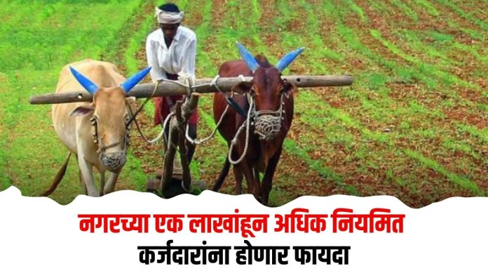 राज्यातील महायुती सरकारने शुक्रवारी पुण्यश्लोक अहिल्याबाई होळकर शेतकरी कर्जमाफी योजनेच्या अंतर्गत शेतकऱ्यांना दोन लाखांपर्यंतचे कर्जमाफी देण्यात येणार असल्याचे मुख्यमंत्री देवेंद्र फडणवीस यांनी जाहीर केले. यात नगर जिल्ह्यातील नियमित कर्ज भरणाऱ्या जिल्हा बँकेच्या १ लाखांहून अधिक शेतकऱ्यांना ५० हजार रुपयांच्या अनुदानाचा लाभ होणार आहे. तसेच ३० सप्टेंबर २०२५ पर्यंत पीक कर्ज थकीत असलेल्या पात्र शेतकऱ्यांना दोन लाख रुपयांपर्यंतचे कर्ज माफ होणार आहे. यासाठी बँकांना पुन्हा कर्जाच्या रक्कमेची विगतवारी करून आकडेवारी घ्यावी लागणार आहे.