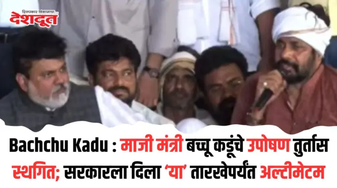 मागील सात दिवसांपासून राज्याचे माजी मंत्री बच्चू कडू (Bachchu Kadu) यांचे विविध मागण्यासाठी अमरावती (Amravati) येथील मोझरीमध्ये अन्नत्याग उपोषण (Hunger Strike) सुरु असल्याने कडू यांची प्रकृती दिवसेंदिवस खालवत चालली होती. यामुळे त्यांना तातडीने रुग्णालयात दाखल करण्याची आवश्यकता आहे, असे डॉक्टरांनी सांगितले होते. त्यानंतर अखेर बच्चू कडू यांनी आपले उपोषण तूर्तास स्थगित केले आहे.