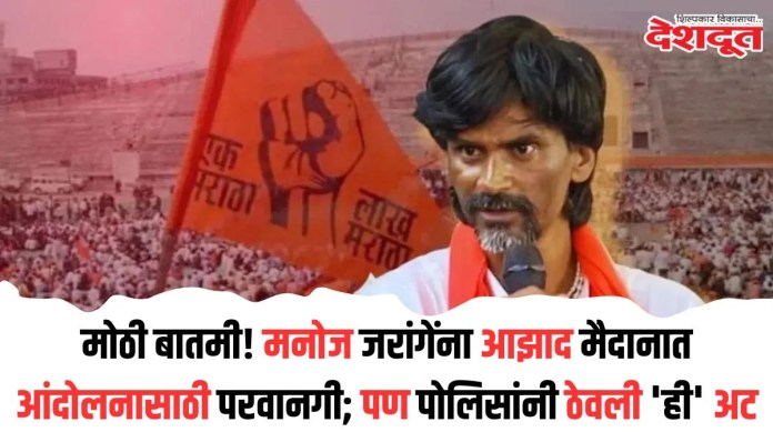 यानंतर आता मनोज जरांगे यांच्या उपोषणास मुंबई पोलिसांनी परवानगी दिली आहे. मनोज जरांगे पाटील यांना मुंबईतील आझाद मैदान येथे एक दिवस आंदोलन करण्यासाठी पोलिसांकडून परवानगी मिळाली आहे. तसेच त्यांच्यासोबत फक्त पाच हजार आंदोलकांना उपस्थित राहण्याची परवानगी देण्यात आली आहे. याशिवाय आणखी काही अटी देखील घालण्यात आल्या आहेत.