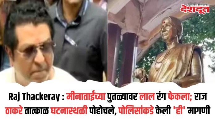 आज सकाळच्या सुमारास हा प्रकार उघडकीस आल्यानंतर शिवाजी पार्क परिसरामध्ये शिवसैनिक आणि ठाकरे गटाचे नेते दाखल झाले. त्यानंतर पुतळ्याची स्वच्छता केली. या घटनेनंतर ठाकरेंच्या शिवसेनेसह मनसे आणि शिंदेंच्या शिवसेनेने आक्रमक पवित्रा घेतला आहे. यानंतर आता मनसेप्रमुख राज ठाकरे (Raj Thackeray) यांनी मीनाताई ठाकरेंच्या पुतळ्याजवळ दाखल होत पाहणी केली.