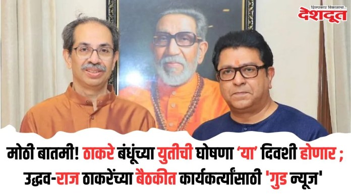 तसेच इंडिया आघाडी किंवा महाविकास आघाडीकडून (Mahavikas Aaghadi) राज ठाकरेंसोबत युती करण्यास विरोध झाल्यास उद्धव ठाकरे इंडिया आघाडीतून बाहेर पडणार असल्याचे बोलले जात आहे. मात्र असे असले तरी राज आणि उद्धव ठाकरे यांच्या पक्षांची युती घटस्थापनेच्या मुहूर्तावर होणार असल्याचे निश्चित झाल्याचे सांगितले जात आहे.