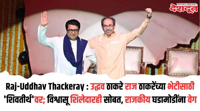 गणेशोत्सवात ठाकरेंच्या शिवसेनेचे प्रमुख उद्धव ठाकरे (Uddhav Thackaray) यांनी सहकुटुंब मनसेप्रमुख राज ठाकरेंच्या (Raj Thackaray) घरी भेटी दिली होती. यावेळी त्यांनी राज यांच्या घरी विराजमान असलेल्या गणपती बाप्पाचे दर्शन घेतले होते. त्यानंतर आज (बुधवारी) पुन्हा एकदा उद्धव ठाकरे यांनी राज ठाकरेंच्या ‘शिवतीर्थ’ या निवासस्थानी भेट घेतली आहे. त्यामुळे राजकीय वर्तुळात चर्चांना उधाण आले आहे.