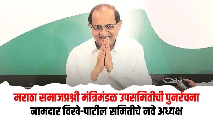 मराठा आरक्षणाच्या मागणीवर आंदोलक मनोज जरांगे यांनी येत्या २९ ऑगस्टला मुंबईत आंदोलनाची हाक दिली असताना राज्य सरकारने शुक्रवारी मराठा समाजाच्याप्रश्नी मंत्रिमंडळ उपसमितीची पुनर्रचना केली आहे. जलसंपदा मंत्री राधाकृष्ण विखे पाटील यांच्याकडे या उपसमितीचे अध्यक्षपद सोपविण्यात आले आहे.