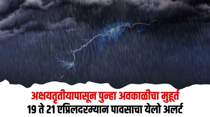 राज्यातील अनेक भागात उष्णतेच्या लाटेची नोंद झाली आहे. तर राज्यात आज शनिवारपासून काही ठिकाणी वादळी पावसाला पोषक वातावरण आहे. विदर्भ, मराठवाडा आणि मध्य महाराष्ट्रातील काही भागात पावसाचा अंदाज आहे. नगर जिल्ह्यात देखील अक्षयतृतीयाच्या मुहूर्तापासून पुन्हा वादळी अवकाळीची शक्यता असून १९ ते २१ एप्रिलदरम्यान पावसाचा येलो अलर्ट देण्यात आला आहे.