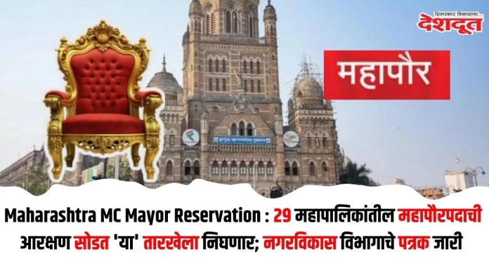मुंबईसह राज्यातील २९ महानगरपालिकांमधील महापौरपदाच्या आरक्षणाची (Mayor Reservation) सोडत २२ जानेवारीला सकाळी ११ वाजता काढली जाणार आहे. त्यामुळे कोणत्या प्रवर्गाचा महापौर कोणत्या महानगरपालिकेमध्ये बसणार हे २२ जानेवारीला स्पष्ट होईल. या आरक्षण सोडतीबाबतचे अधिकृत पत्रकही जारी करण्यात आले आहे. या पत्रकात राज्यातील २९ महानगरपालिकांमधील महापौर पदाचे आरक्षण निश्चितीसाठी आरक्षणाची सोडत मा. राज्यमंत्री (नगर विकास) महोदयांच्या अध्यक्षतेखाली गुरुवार, दि.२२ जानेवारी २०२६ रोजी जारी केली जाणार असल्याचे म्हटले आहे.