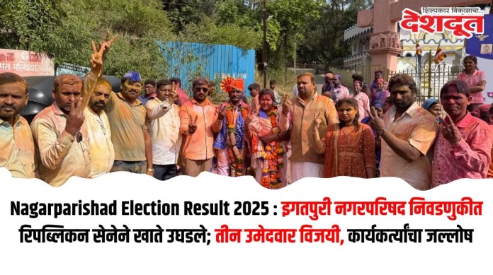 रिपब्लिकन सेनेने या निवडणुकीसाठी चार उमेदवार रिंगणात उतरवले होते. त्यापैकी तीन उमेदवार विजयी (Won) झाल्याने पक्षात उत्साहाचे वातावरण आहे. जिल्हाध्यक्ष अविनाश शिंदे यांच्या नेतृत्वाखाली पदाधिकारी व कार्यकर्त्यांनी ही निवडणूक अत्यंत प्रतिष्ठेची करून संपूर्ण इगतपुरी शहर पिंजून काढले आहे. इगतपुरी तालुक्यातील जनतेने आनंदराज आंबेडकर यांच्या नेतृत्वावर विश्वास व्यक्त केला असून हा निकाल त्याचेच द्योतक आहे, असे अविनाश शिंदे यांनी सांगितले. येणाऱ्या नाशिक महानगरपालिका निवडणुकीत अधिकाधिक उमेदवार विजयी करण्यासाठी पक्षाची तयारी सुरू असल्याचेही त्यांनी स्पष्ट केले. उमेदवारीसाठी पक्षाकडे मोठ्या प्रमाणावर अर्ज आले असून छाननीनंतर लवकरच उमेदवारांची घोषणा केली जाणार आहे.