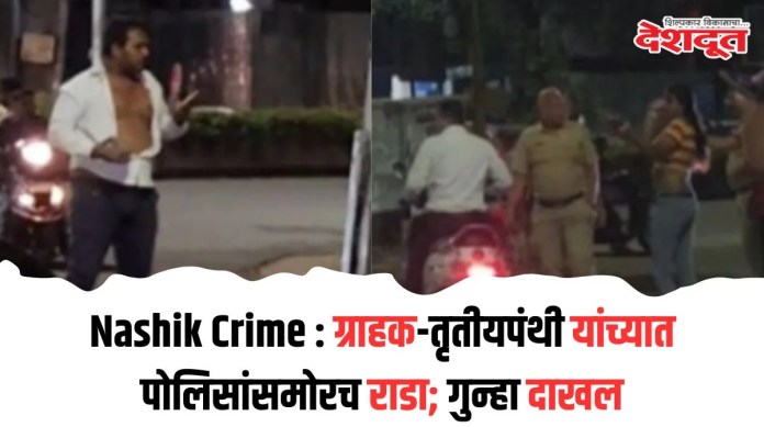 मुंबईनाका पोलिसांच्या (Mumbai Naka Police) हद्दीतील मुख्य रस्त्यावर गुरुवारी रात्री (दि. २४) ग्राहक आणि तृतीयपंथीयांत क्षुल्लक कारणातून झालेला वाद (Dispute) टोकाला पोहोचला. विशेष म्हणजे भरस्त्यात पोलिसांसमक्ष हा राडा झाला. यावेळी एका तृतीयपंथीयाच्या हातात धारदार कोयता दिसून आल्याचा दावा बघ्यांनी केला.वेश्याव्यवसायातून हा वाद झाल्याचे तपासात समोर येत आहे. दरम्यान, या घटनेचा धक्कादायक व्हिडीओ व्हायरल झाला असून, पोलिसांनी दोन्ही गटांतील चौघांना अटक केली आहे.