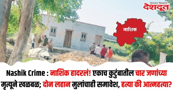 याबाबत अधिक माहिती अशी की, देवळा तालुक्यातील फुले माळवाडी येथील गोविंद बाळू शेवाळे (वय ४०) यांचा मृतदेह गळफास घेत असलेल्या अवस्थेत आढळला आहे. तर कोमल गोविंद शेवाळे (वय ३५), ख़ुशी गोविंद शेवाळे (वय ८) आणि शाम गोविंद शेवाळे (वय दीड वर्ष) यांचे मृतदेह (Dead Body) पलंगावर झोपलेल्या अवस्थेत आढळून आले आहेत.