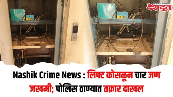 जेलरोड परिसरातील (Jail Road Area) राहुल नगर या ठिकाणी असलेल्या पारा अव्हेन्यू सोसायटीमध्ये एक लिफ्ट तळमजल्यावरून चौथ्या मजल्यावर जात असताना वायर रोप तिसऱ्या मजल्याजवळ तुटल्याने लिफ्ट थेट तळमजल्यावर कोसळल्याची (Lift Collapse) घटना घडली आहे. या दुर्घटनेत तीन महिलांसह एक चार वर्षाचा बालक गंभीर जखमी झाला आहे.