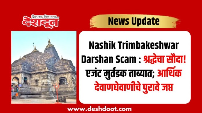 त्र्यंबकेश्वर देवस्थानातील व्हीआयपी दर्शन घोटाळ्याचा (Trimbakeshwar Darshan Scam) तपास करणाऱ्या एसआयटीने या साखळीतील मुख्य म्होरक्या वसंत उर्फ नारायण कचरू मुर्तडक (२६) याला अखेर गुरुवारी रात्री अटक केली आहे. शुक्रवारी (दि. २४) जिल्हा न्यायालयाने त्याला २८ एप्रिलपर्यंत पाच दिवसांची पोलिस कोठडी सुनावली असून या अटकेमुळे घोटाळ्याच्या मुळापर्यंत पोहोचण्याचे धागेदोरे आता पोलिसांच्या (Police) हाती लागले आहेत. दरम्यान, मुर्तडक हा त्र्यंबकेश्वरमध्ये एजंट म्हणूण कुप्रसिद्ध असल्याचे उघड झाले आहे.