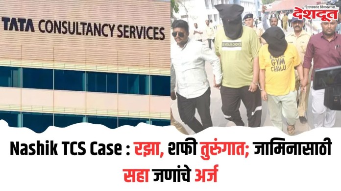 टीसीएस कंपनीतील विनयभंग, अत्याचार व धर्मांतराचा प्रयत्न प्रकरणातील गुन्ह्यात दुसऱ्यांदा अटक (Arrested) करण्यात आलेले संशयित रझा आणि शफी यांना सोमवारी (दि.२०) न्यायालयीन कोठडी सुनावण्यात आली आहे. दोघांचीही रवानगी आता नाशिकरोड कारागृहात (Nashik Road Jail) करण्यात आली आहे. दरम्यान, या प्रकरणातील अन्य सहा संशयितांनी जामिनासाठी न्यायालयात धाव घेतली आहे.