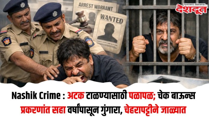 ‘चेक बाउन्स प्रकरणात (Cheque Bounce Case) दोन न्यायालयांनी तिसऱ्यांदा बजावलेल्या ‘अटक वॉरंट’ ला ठेंगा दाखवित पळ काढणाऱ्या ठगास म्हसरुळ पोलिसांनी (Mhasrul Police) केवळ चेहरापट्टीमुळे ताब्यात घेतले आहे. त्याचवेळी त्याने पोलिसांसोबत हुज्जत घालून पोलिसांच्या बोटांचा चावा घेण्याचा प्रयत्न केला. अखेर पोलिसांनी त्याला गजाआड करीत तुरुंगाची हवा खाऊ घातली. सुभाष दत्तात्रय राजोळे (रा. मेनरोड, पिंगळे गल्ली, मखमलाबाद) असे संशयिताचे नाव आहे.
