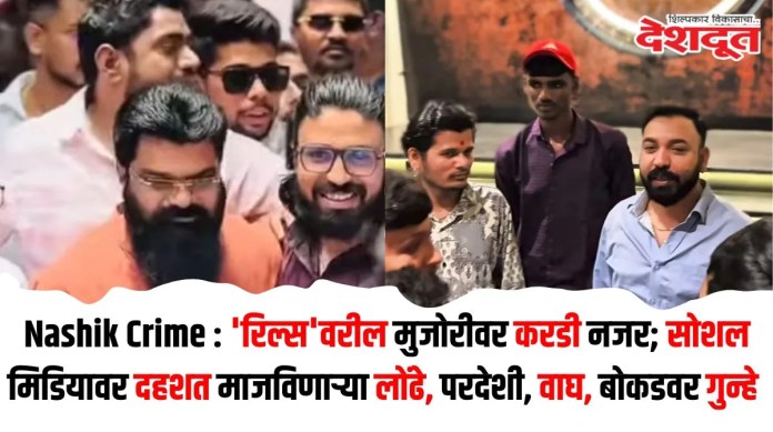 इन्स्टग्राम अकाऊंटवर दहशतीचे तसेच गंभीर गुन्ह्यात अटक करुन बेड्या ठाेकत शहर पाेलीस काही संशयितांना न्यायालय व अथवा पाेलीस ठाण्यात नेत असल्याचे व्हिडीओ, त्याला धमकीचे ऑडिओ व काही चित्रपटातील गीते फिक्स करुन भिती निर्माण करणाऱ्या खुनाच्या गुन्ह्यातील आराेपी कुंदन सुरेश परदेशी याच्यावरही गुन्हा दाखल झाला आहे. तसेच, सराईत गुंड गणेश सुरेश वाघ, मंगेश सावकार गिते, अमाेल काळू बाेकड(रा. जलालपूर) व सलीम माेहम्मद शेख (रा. चुंचाळे) यांच्यावरही कारवाई करण्यात आली आहे. दरम्यान, कुंदन हा सराईत असून त्याला सुनील वाघ हत्याप्रकरणात जन्मठेपेची शिक्षा मिळाली आहे. तसेच, विविध खून, प्राणघातक हल्ले, खंडणीसह अन्य गंभीर गुन्हे दाखल आहेत. ताे जामिनावर असल्याचे कळते. तर गणेश वाघ उर्फ गण्या कावळ्या याच्यावरही खून, जीवघेणे हल्ले व गंभीर स्वरुपाचे गुन्हे नाेंद आहेत.