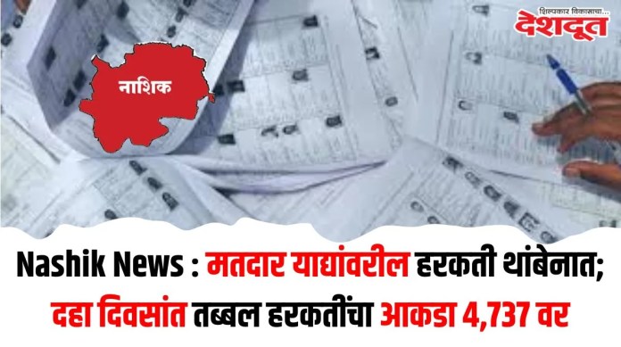 आगामी महापालिका निवडणुकीसाठी (NMC Election) प्रसिद्ध करण्यात आलेल्या प्रभागनिहाय प्रारूप मतदारयाद्यांतील (Voter List) त्रुटींमुळे नागरिकांकडून मोठ्या प्रमाणावर हरकती दाखल होत असून आज २९ नोव्हेंबरपर्यंत एकूण ४,७३७ हरकती मनपाकडे दाखल झाल्या आहेत. मतदारयादीतील दुबार नावे, मयत व्यक्तींचा समावेश, चुकीच्या प्रभागात नावे टाकणे अशा विविध गंभीर त्रुटींमुळे नागरिक, राजकीय पक्ष आणि कार्यकर्त्यांत नाराजी व्यक्त होत आहे.