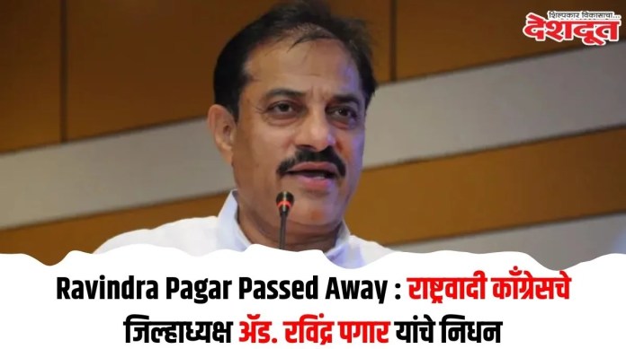 राष्ट्रवादी काँग्रेसचे जिल्हाध्यक्ष ॲड. रविंद्र नाना पगार (Ravindra Pagar) यांचे अल्पशा आजाराने (आज दि.३) निधन झाले. त्यांचा अंत्यविधी बुधवार दि. ४ फेब्रुवारी २०२६ रोजी दु. ३ वाजता उत्राने, ता.बागलाण जि. नाशिक येथे होणार आहे.