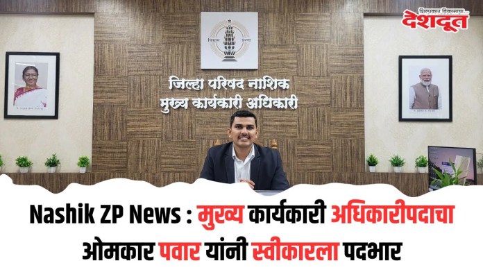 नाशिक जिल्हा परिषदेच्या (Nashik Zilla Parishad) मुख्य कार्यकारी अधिकारीपदी भारतीय प्रशासकीय सेवेतील अधिकारी (IAS) ओमकार पवार (Omkar Pawar) यांनी आज (बुधवारी) पदभार स्वीकारला. जिल्हा परिषदेचे अतिरिक्त मुख्य कार्यकारी अधिकारी डॉ. अर्जुन गुंडे यांच्या हस्ते त्यांना पदभार सुपूर्द करण्यात आला. यावेळी जिल्हा परिषदेतील सर्व विभागांचे विभागप्रमुख उपस्थित होते.