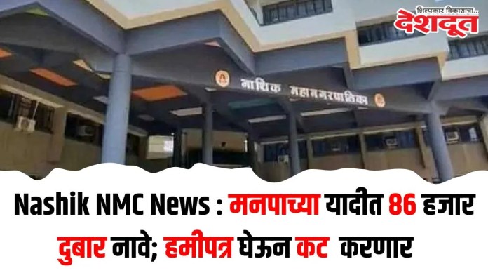 निवडणूक आयोगाच्या ( Election Commission) आदेशानुसार मनपा प्रशासनाने गुरुवारी शहरातील सर्व ३१ प्रभागांची प्रभाग निहाय मतदार यादी (Voter List) जाहीर केली. दरम्यान ही मतदारयादी जाहीर करताना दुबार मतदारांची आकडेवारी समोर आल्याने खळबळ उडाली आहे. शहरातील नाशिक पूर्व, पश्चिम, मध्य व देवळाली मतदारसंघाचा काही भागात तब्बल ८६ हजार ६८८ दुबार मतदार समोर आले आहे. दरम्यान मतदानाच्या दिवशी केंद्रप्रमुख ज्यांचे नावे दुबार आहेत. त्यांच्याकडून हमीपत्र घेऊन नावे कट करणार आहेत.