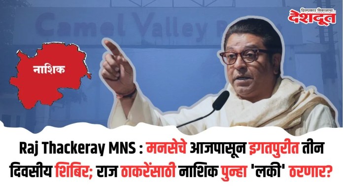 आगामी स्थानिक स्वराज्य संस्थांच्या निवडणुकीसाठी (Local Body Election) मनसेचे (MNS) राज ठाकरेंच्या (Raj Thackeray) उपस्थितीत आजपासून (दि.१४) पुढील तीन दिवस इगतपुरीमधील कॅमल व्हॅली रिसोर्टमध्ये शिबिर पार पडणार आहे. या शिबिराच्या माध्यमातून पक्षप्रमुख राज ठाकरे कोणती भूमिका मांडणार, याकडे अवघ्या राज्याचे लक्ष लागले आहे. स्थानिक स्वराज्य संस्थांच्या निवडणुका अद्याप घोषित झालेल्या नसल्या तरी मनसेने निवडणुकांची जोरदार तयारी सुरू केली आहे.