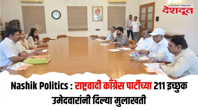 भुजबळ फार्म नाशिक (Nashik) येथील कार्यालयात या मुलाखतींसाठी नाशिक शहरातील विविध ३१ प्रभागांतून २०० हून अधिक इच्छुक उमेदवारांनी मोठ्या उत्साहाने सहभाग नोंदवला. सकाळी १० पासून सुरु झालेल्या मुलाखती सायंकाळी उशिरापर्यंत घेण्यात आल्या. यावेळी भुजबळ फार्म येथील कार्यालय परिसरात इच्छुक उमेदवारांची मोठी गर्दी पाहायला मिळाली. मुलाखती दरम्यान प्रत्येक इच्छुक उमेदवाराची सामाजिक बांधिलकी, पक्षाशी असलेली निष्ठा, निवडून येण्याची क्षमता, दांडगा जनसंपर्क, संघटनात्मक कामगिरी, प्रभागातील कामाचा अनुभव तसेच येणाऱ्या निवडणुकीसाठीची तयारी याबाबत सखोल चर्चा करण्यात आली. पक्ष संघटना अधिक बळकट करण्याच्या दृष्टीने सर्व बाबींचा विचार करूनच ही प्रक्रिया राबविण्यात आल्याचे माजी खासदार समीर भुजबळ यांनी सांगितले.