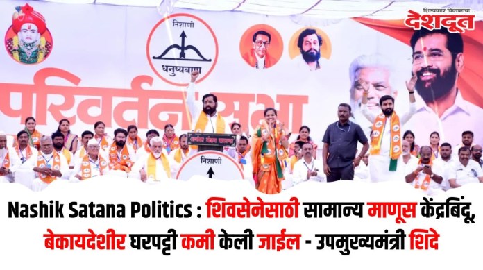 येथील नगरपरिषद निवडणुकीच्या पार्श्वभूमीवर शिवसेनेच्या नगराध्यक्ष पदाच्या उमेदवार हर्षदा पाटील यांच्यासह प्रभागातील उमेदवारांच्या प्रचारार्थ शहरातील पाठक मैदानावर आयोजित सभेत बोलताना शिंदे यांनी देवमामलेदार यशवंतराव महाराज यांच्या लोकाभिमुख कार्याचा आदर्श जोपासत नगरपरिषदेच्या सेवा सहकार्य समृद्धीच्या ब्रीदवाक्यानुसार प्रशासनाचे काम अपेक्षित असल्याचे सांगितले.