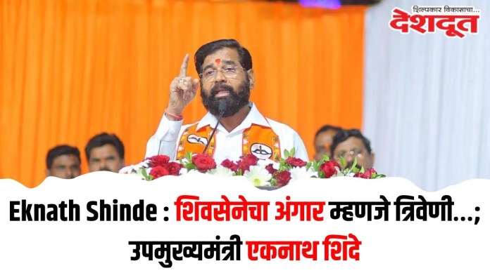 त्र्यंबक नगरपरीषदेच्या निवडणुकीसाठी (Trimbakeshwar Nagar Parishad Election) शिवसेनेच्या उमेदवार त्रिवेणी तुंगार असून, त्यांच्याकडे विचार, विकास आणि विश्वास यांचा ‘त्रिवेणी’ संगम आहे. त्यांचे नाव त्रिवेणी तुंगार असल्याने त्या शिवसेनेचा अंगार आहे. धनुष्यबाणाला मत म्हणजे विकासाला मत हे सांगण्यासाठी मी याठिकाणी आलो आहे, असे प्रतिपादन राज्याचे उपमुख्यमंत्री एकनाथ शिंदे (Eknath Shinde) यांनी केले. आज प्रचाराच्या शेवटच्या दिवशी येथील उमेदवारांच्या प्रचारार्थ उपमुख्यमंत्री एकनाथ शिंदे यांची सभा आयोजित करण्यात आली होती. त्यावेळी ते बोलत होते.