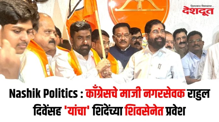 महापालिका निवडणुकीच्या (Nashik NMC Election) पार्श्वभूमीवर नाशकात मोठ्या राजकीय घडामोडी घडत असून, विविध पक्षांचे पदाधिकारी सत्ताधारी महायुतीमधील घटक पक्षांत प्रवेश करत आहेत. काँग्रेसचे (Congress) माजी नगरसेवक राहुल दिवे यांनी काल (मंगळवारी) पक्ष सदस्यत्वाचा राजीनामा प्रदेशाध्यक्ष सपकाळ यांच्याकडे सुपूर्द करत पक्षाला सोडचिठ्ठी दिली होती. त्यामुळे ते नेमक्या कुठल्या पक्षात प्रवेश करणार याकडे सगळ्यांच्या नजरा लागून होत्या. यानंतर आज (बुधवारी) दिवे यांनी मुंबई गाठत शिंदेंच्या शिवसेनेत प्रवेश केला आहे.