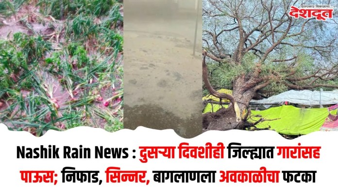 जिल्ह्यातील निफाड, सिन्नर, बागलाण तालुक्यात रविवारनंतर सोमवारीही पावसाने (Rain) हजेरी लावली. त्यामुळे बळीराजा पुरता हैराण झाला आहे. दरम्यान, जिल्ह्याला (District) मंगळवारी (दि.३१) ‘ऑरेंज अॅलर्ट’ देण्यात आला असून जोरदार गारपिटीचा इशारा देण्यात आला आहे.