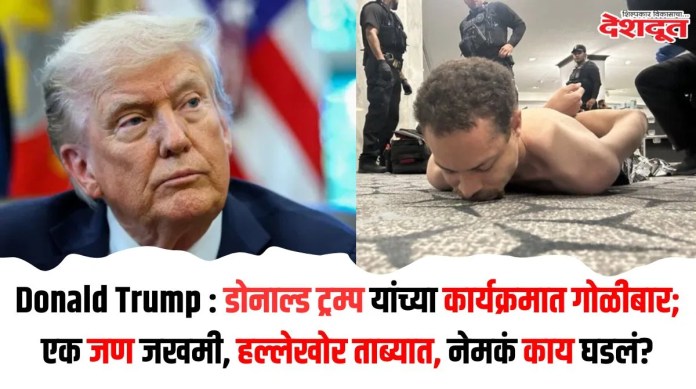 वॉशिंग्टनच्या हिल्टन हॉटेलमध्ये शनिवारी रात्रीच्या जेवणाचा कार्यक्रम सुरू होता. यावेळी अचानक मोठे आवाज झाले. सुरक्षेचा धोका ओळखून ‘सीक्रेट सर्व्हिस’च्या अधिकाऱ्यांनी तात्काळ डोनाल्ड ट्रम्प आणि त्यांची पत्नी मेलानिया ट्रम्प यांना सुरक्षित ठिकाणी हलवले. सुरक्षा दलांनी केलेल्या कारवाईत एका सशस्त्र संशयित हल्लेखोराला गोळ्या घालून ठार करण्यात आले असून दुसऱ्या एका संशयिताला ताब्यात घेतल्याची प्राथमिक माहिती समोर आली आहे.