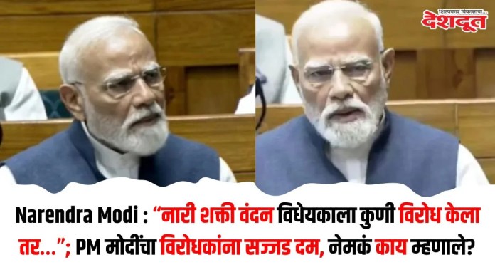 यावेळी ते म्हणाले की, “आज ‘नारी शक्ती वंदन अधिनियम’ विधेयकावर चर्चा करताना हे निश्चित आहे की एक ऐतिहासिक संधी आपल्याला मिळाली आहे. यामुळे देशातील ५० टक्के लोकांना देशाच्या धोरणात्मक पातळीवर निर्णय प्रक्रियेत सामिल होण्याची संधी मिळणार आहे. मी आज ही बाजू किंवा ती बाजू असं राजकीय भाष्य करणार नाही. परंतु, आजपर्यंतचा इतिहास पाहिला तर महिलांच्या धोरणाला ज्यांनी विरोध केला त्यांचे राजकीय मोठे हाल झालेले आहेत. परंतु, २०२४ ला हे घडलं नाही. कारण, सगळ्याच पक्षांनी त्यावेळी या विधेयकाला पाठिंबा दिला होता, त्यामुळे सर्वांना योग्य लाभ झाला. पण आता जर कुणी या विधेयकाला विरोध केला तर राजकीय मोठे हाल होणार हे लक्षात घ्या”, असा टोलाही पंतप्रधान मोदी यांनी विरोधकांना लगावला.