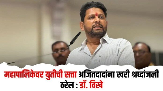 अहिल्यानगर महापालिकेवर राष्ट्रवादी काँग्रेस व भारतीय जनता पक्षाच्या युतीची सत्ता आली आहे. राज्यात आमदार संग्राम जगताप यांच्या नेतृत्वाखाली राष्ट्रवादी काँग्रेसचा एकमेव महापौर निवडला गेला आहे. हे स्वर्गीय अजितदादा पवारांना खरी श्रध्दांजली ठरेल, असे प्रतिपादन माजी खासदार डॉ. सुजय विखे पाटील यांनी केले.