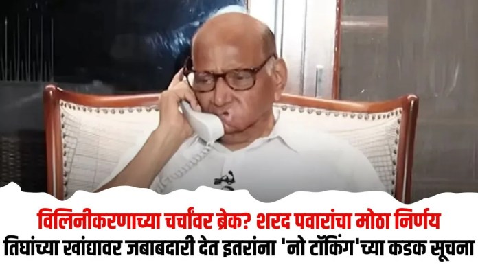 विलिनीकरणाच्या मुद्द्यावरून पक्षात आणि माध्यमांमध्ये गोंधळ निर्माण होऊ नये, यासाठी शरद पवार गटाने कठोर पावले उचलली आहेत. पक्षाचे प्रवक्ते किंवा इतर कोणत्याही नेत्याने या संवेदनशील विषयावर वरिष्ठांच्या परवानगीशिवाय माध्यमांशी बोलू नये, अशा स्पष्ट सूचना देण्यात आल्या आहेत. चुकीच्या माहितीमुळे चर्चा भरकटू नये आणि संभ्रम निर्माण होऊ नये, हा यामागचा मुख्य उद्देश असल्याचे सांगितले जात आहे. पक्षाने विलिनीकरणाबाबतची अधिकृत भूमिका मांडण्याची जबाबदारी केवळ तीन ज्येष्ठ नेत्यांवर सोपवली आहे. यामध्ये खासदार सुप्रिया सुळे, माजी प्रदेशाध्यक्ष जयंत पाटील आणि विद्यमान प्रदेशाध्यक्ष शशिकांत शिंदे यांचा समावेश आहे. या तिघांव्यतिरिक्त इतर कोणीही विलिनीकरणावर भाष्य करू नये, असे आदेश पक्षश्रेष्ठींनी दिले आहेत.