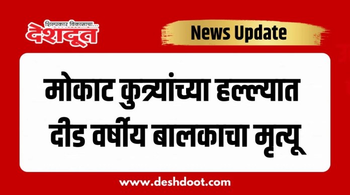 शहेजाद कलिम शेख ( वय दीड वर्ष) हे त्या मयत बालकाचे नाव आहे. शहेजाद याचे आई – वडील घरात झोपलेले होते.तो घराजवळच खेळत असतांना त्याच्यावर भटक्या कुत्र्यांनी हल्ला चढवित त्याला जखमी केले. तो रक्तबंबाळ झाला. त्याचे कुटुंबीय व लगतच्या नागरिकांनी त्याची कुत्र्याच्या तावडीतून मुक्तता करत जखमी अवस्थेत सामान्य रूग्णालयात दाखल करण्यात आले होते.